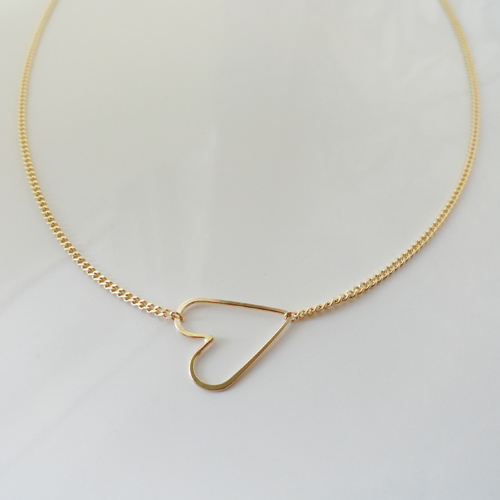 This is the largest heart necklace in the "moving heart" series. The heart measures about 5/8" long x 1/2" wide, and the chain is slightly larger gauge than the "Teenie", so it has more weight to it. The base length is 16"-see drop-down menu for longer lengths and mixed metal options.